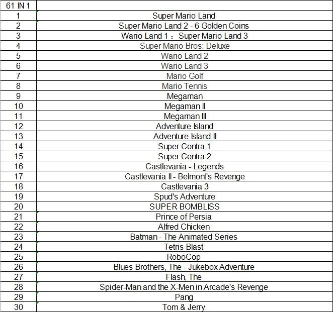 61 IN 1 GameBoy Advance US Version GBC 16 bit Cartridge Console Game Card English Language