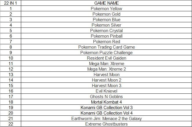 22 IN 1 GameBoy Advance US Version GBC 16 bit Cartridge Console Game Card English Language