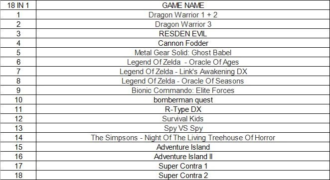 18 IN 1 GameBoy Advance US Version GBC 16 bit Cartridge Console Game Card English Language