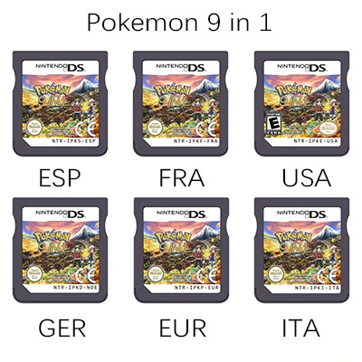 9 In 1 Pokemon Black White HeartGold SoulSilver Diamond Pearl Platinum Multilingual NDS Cartridge Console Game Card