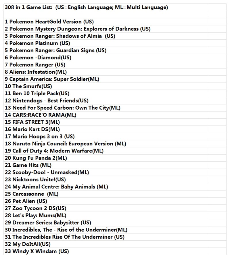 308 in 1 Call Of Duty Pokemon Mario USA Version DS Multi Game Card Cartridge Console for DS 3DS 2DS English Language