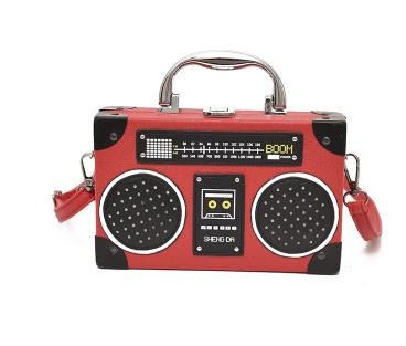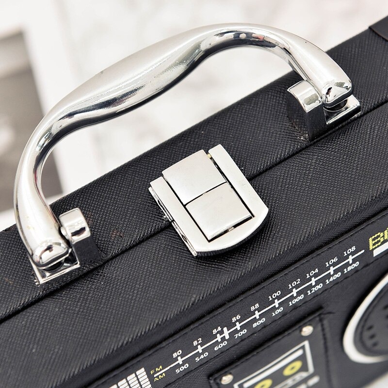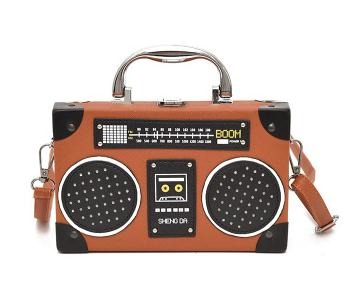 Creative simulation radio recorder box package pu leather ladies handbag shoulder bag