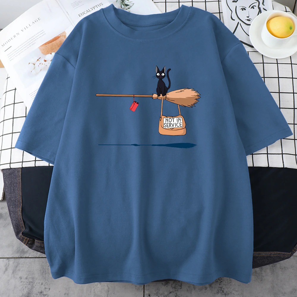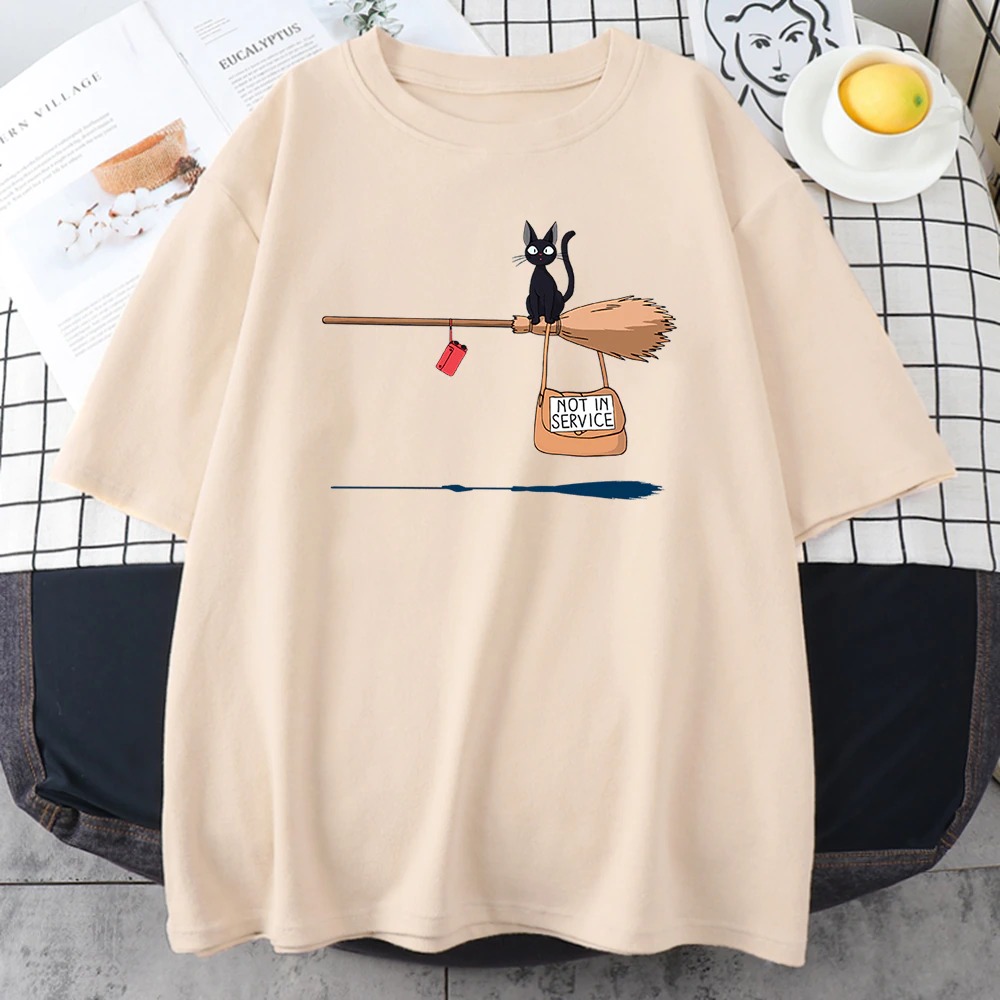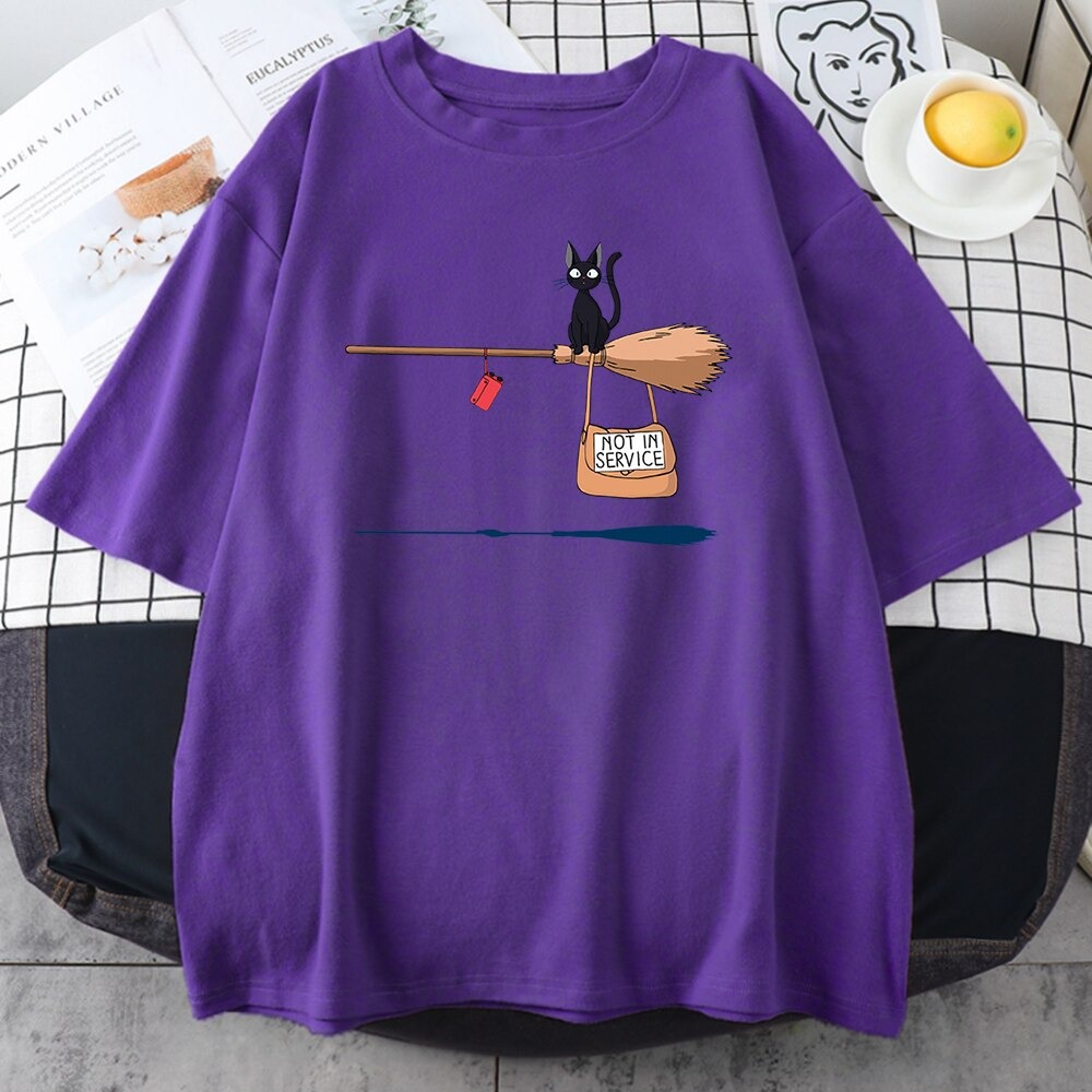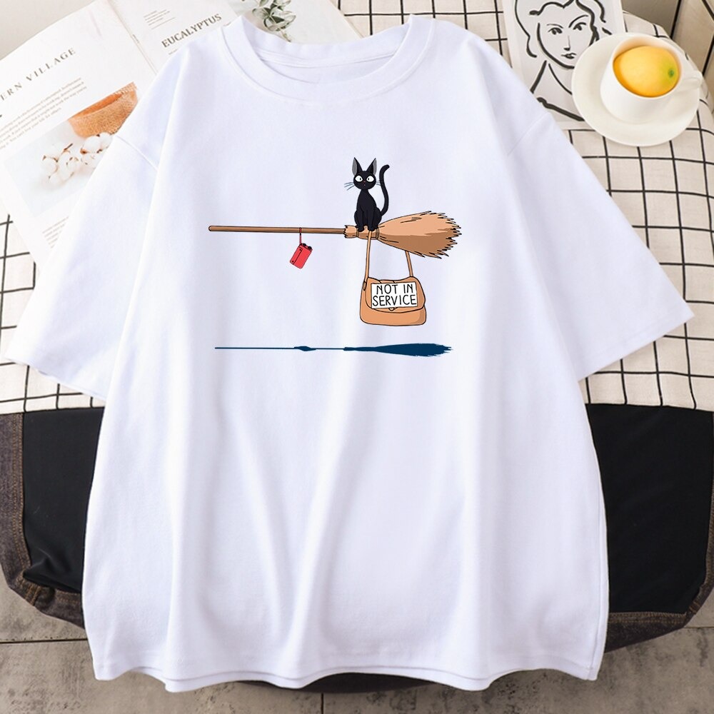 Magic broom cat Tshirt Harajuku Comics Short Sleeve