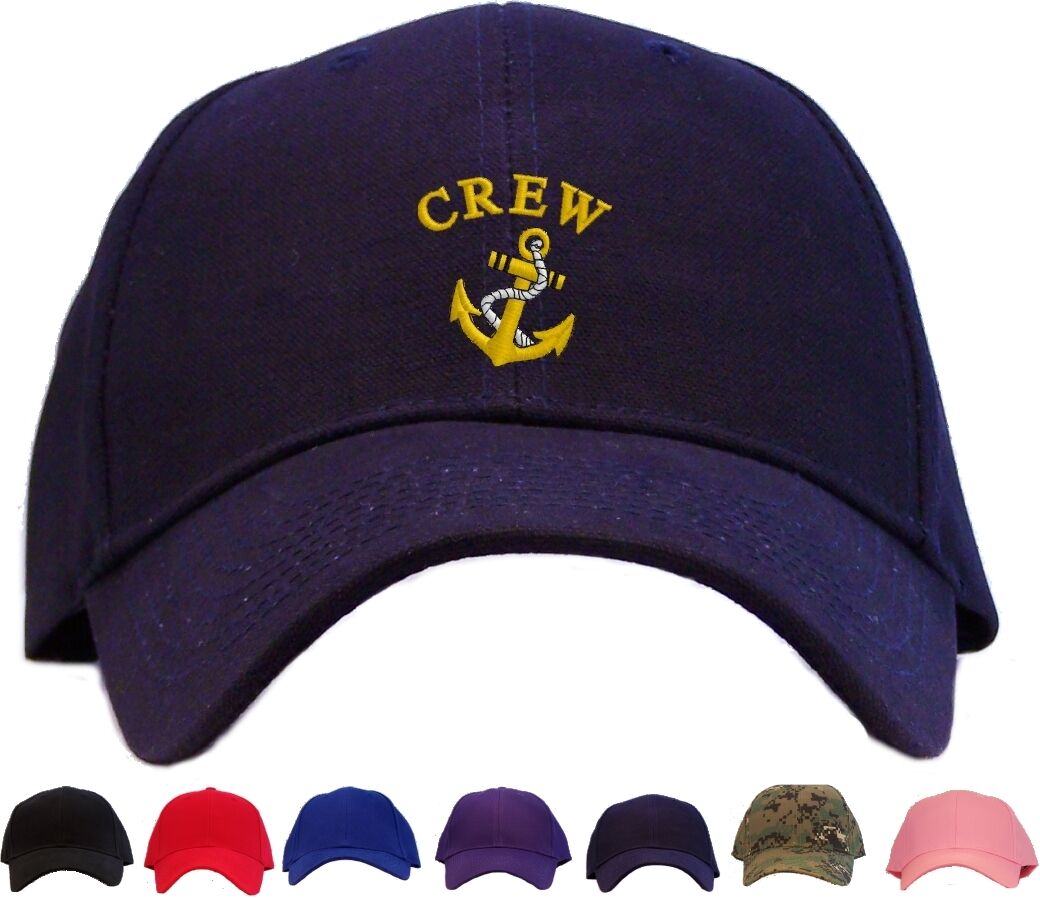 Crew with Anchor Embroidered Baseball Cap - Available in 7 Colors - Hat