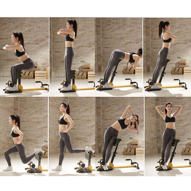 this 8-in-1 multifunctional fitness trainer will provide core workout training to your body. It is an ideal body trainer for a sit-up, back exercise, push-up, and flat support to greatly exercise your abdomen, leg muscles, and gluteus. With a load-bearing of 265 lbs, this squat is sturdy, durable, and hard to deform or shake. The bottom is designed into a t-shape to ensure its stability. Adjust the heights of the cylinders and mat with the knobs to meet the different people's needs. An ergonomic leg cushion with pvc+pu cover supports your legs softly to make sports more comfortable. 4 enlarged footpads at the bottom will prevent skid and protect the floor. Slipping can be effectively prevented due to the non-slip handles and the front pedal. Two wheels in the front will help girls move it easily without much effort. And it can be stored or cleaned very easily. Get one of these sissy squats to maintain a good body shape!Feature8-in-1 sissy squat combines a variety of core training functions, suitable for home gym perfect to exercise abdomen, leg & arm muscles, quadriceps and gluteus Thickened iron squat with 265 lbs load-bearing is stable and durable enough for a long time use-shape bottom design to prevent turning over when you are dong exercises11 levels height adjustable up to 11. 5'' for people with different height requirement Ergonomic cushion with pvc+pu cover to support your legs comfortably 4 enlarged non-slip foot pads will increase friction as well as protecting the floor on-slip handles and anti-skid front pedal strengthens its stability and safety Users could move it easily due to the convenient wheels in the front can be kept into a small size for storage or wiped very easily Specification Color: Black + yellow material: Iron + PVC + up Maximum weight of user: 265 lbs overall dimensions:38 '' x 16. 5'' x 18. 5-30'' (l x w x h) Cushion size:16'' x5'' (l x w) Net weight: 29. 5 lbs Package includes:1x sissy squat 1x instruction manual