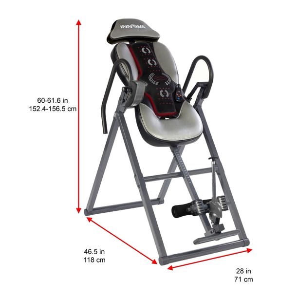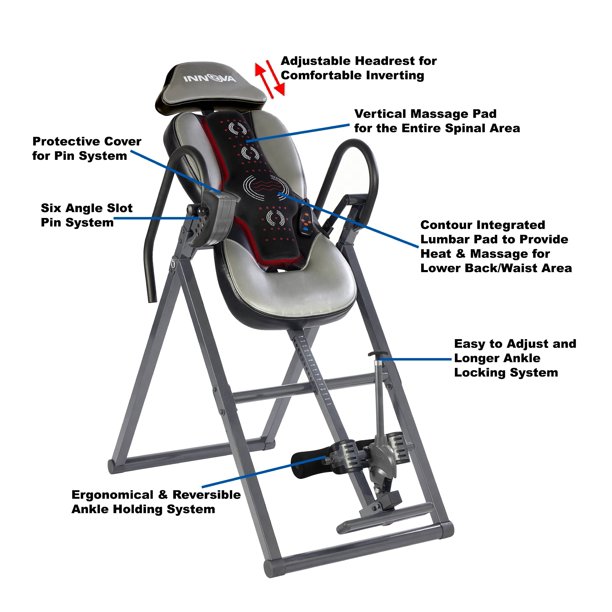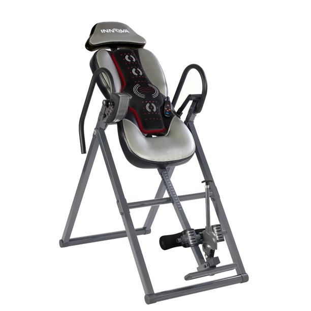 The Innova ITM5950 is a heavy duty inversion table that comes with many features that set it apart from other inversion tables. Starting with it's vertical massage pad that covers the entire spine area and its contour integrated lumbar pad to provide a close up heat and massage therapy for the lower back/waist area and provides isolated Heat and Vibration with multi-mode massage settings for a complete massage experience.