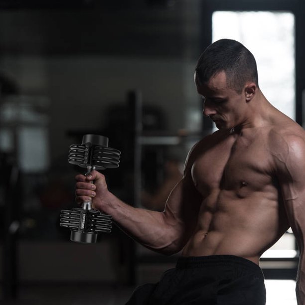 Exercise with dumbbells can help you exercise all parts of your body. This safe and durable SKONYON adjustable dumbbell can well meet your needs for fitness, shaping and strength training. Each dumbbell has a weight range of 5 lbs to 25 lbs. One dumbbell can serve different family members with different weights. Perfect for use in any exercise to tone and sculpt your arms, shoulders, and back, including cardio for higher intensity.