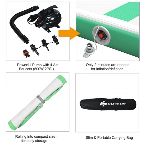 Inflatable gymnastic mats are rapidly becoming a popular equipment in gyms all across the world. Thanks to its premium PVC material, it is safe to jump and land on freely. As it can be folded easily, it is convenient for you to carry and store easily. Not only can it be placed in the gym, dance club, fitness club or school, but also you can use it at home. I am sure you will love doing sports once you have possessed this magical inflatable gymnastic mat!
