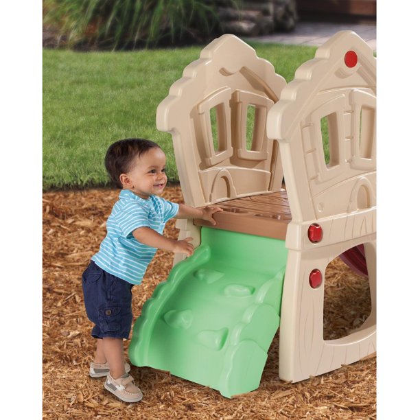 This Little Tikes Hide and Seek Climber with a Swing delivers a world full of adventure for toddlers. It has a swing with a three-point safety belt, an easy-to-climb rock wall and a slide. This climber also has a crawl tunnel and a platform for more ways to play. The slide's gentle slope ensures soft landings, and the large windows are easy to peek through. Made of durable plastic, the Little Tikes swing and slide set is built to last for many years. It is suitable for children 12 months through 4 years, and it can be used indoors or out. The Little Tikes swing set provides hours of active fun while helping toddlers build balance and coordination skills. It is easy to assemble.