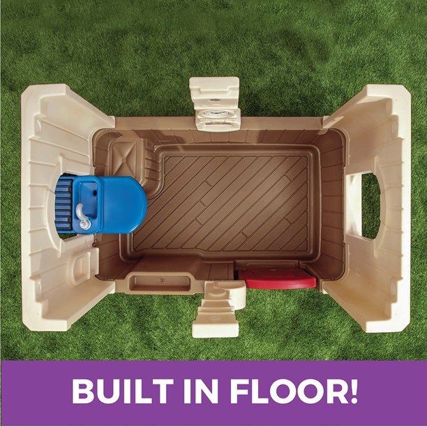 Molded-in kitchen table, faucet, seat, and grill space encourage imaginative outdoor play!