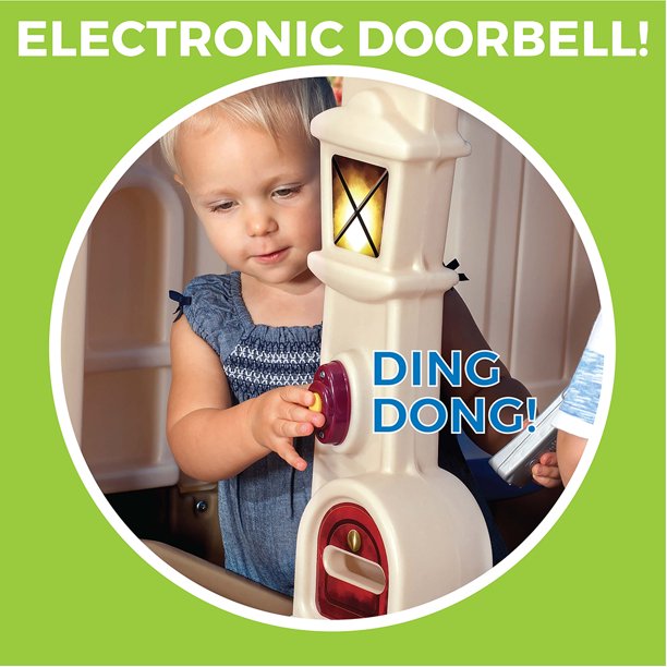 Toddlers will enjoy ringing the doorbell (requires 2 “AA” batteries, not included) and passing mail through the molded-in mailbox.