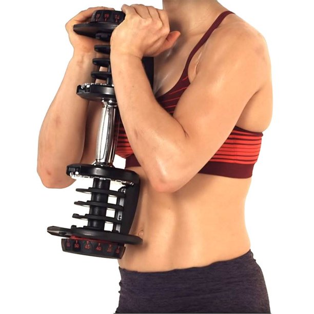 Get ready for the Bowflex SelectTech 1090 Adjustable Dumbbell to pump, you up! This dumbbell is a great, space saving addition to any home gym. The weight can be adjusted from 10 to 90 pounds in 5 pound increments with the turn of a dial. This way you'll continue to see results as your strength and fitness levels improve. With the wide weight range, you will be able to do anything from heavy exercises like shrugs and lunges to light exercises such as curls and raises. Enjoy customizing the intensity of your workout with the Bowflex SelectTech 1090 Adjustable Dumbbell. Only includes one dumbbell. This product is not a pair.