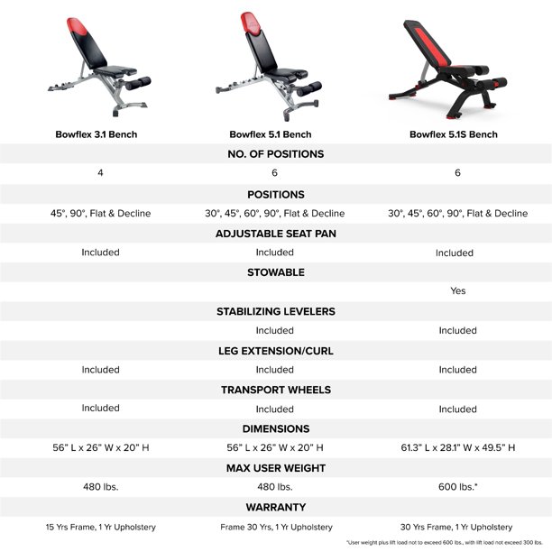 Transform your space with the Bowflex 3.1 Adjustable Bench Adjusts to 4 Positions. Bowflex is one of the most trusted names in home gym equipment, making professional-gym workouts easily attainable for over 30 years. Today, Bowflex features dozens of state-of-the-art, free-standing designs, from their classic home gyms and treadmills to ellipticals and hybrid velocity training machines. This Bowflex weight bench is one of their simplest, easiest designs, allowing for free-weight workouts, crunches, squats, stretching and more. It features decline, flat, 45degree and 90degree angles to accommodate dumbell, barbell, free-weights and cage workouts, as well as a wide range of core, glutes and upper body exercises. A removable leg hold-down brace for added decline position support. The Bowflex adjustable bench has a rugged stainless steel build and a padded seat for comfortable use. It's outfitted with transport wheels for easy portability and storage.