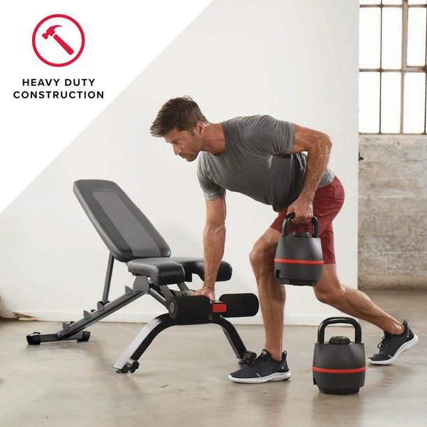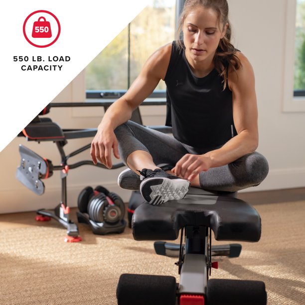 Comfort and versatility should be at the top of your list when choosing a new bench for your workout space. With the Bowflex SelectTech 4.1S Stowable Workout Bench, you'll get just that and more. This bench will adjust to 5 different positions and can help correct your posture with added stability to ensure you have a safe workout. Ideal workouts for this bench include dumbbell, barbell, and cage use. Its easy button click provides a lift and go process and can be easily stored when not in use. Includes a removable leg hold-down brace and has a 550-pound load capacity. Whether you're new to weights or an avid lifter, the Bowflex SelectTech 4.1S Adjustable Workout Weight Lifting Bench is a perfect addition to your workout routine.