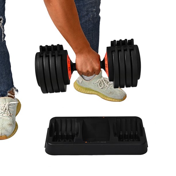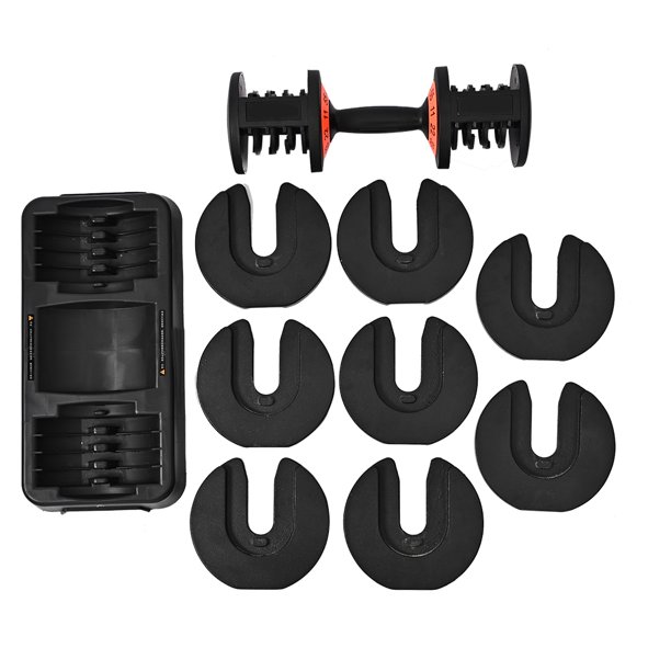 One for 5 sets, the dumbbell allows you to adjust the weight from 11 lbs to 55 lbs with a simple rotation