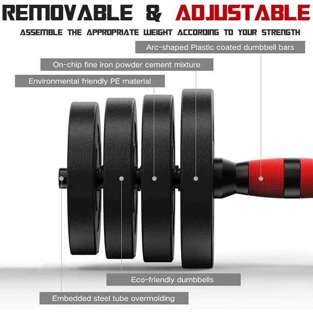 Workout at home, Get good strength but don't have much space, Our Dumbbells are an ideal solution. Dumbbells set can be used as dumbbells and as a barbell. The weight of dumbbells can be adjusted at will to meet daily exercises needs. Reinforced nuts: The material is thickened, the safety protection is more stable. Deepen thread Steel Bars: Spiral anti-skid thread, not easy to fall off. Matte texture Weights Plats With Strengthening Bras: Full weight dumbbells, sturdy, wear-resistant and corrosion-resistant, won't hurt the floor.