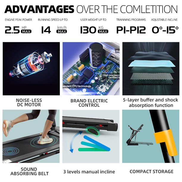 Safety Key & 12 Built-in Workout Programs: Safety Key connect you and the machine, emergency stop button on the handrail, which double protect you while working out. 12 built-in programs are available for you to choose, these easy-to-use exercise programs help to improve your cardiovascular fitness, boost your health, and burn fat.