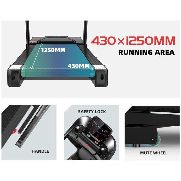 5" Blue-Ray LCD Display & 17" x 49" Rubber Running Belt: Features with 5" blue-ray LCD display, this treadmill provides better watching experience. It shows Time, Distance, Calories, Speed, Pulse and Incline. 17" x 49" big rubber running belt provides more comfortable and more stable workout experience.