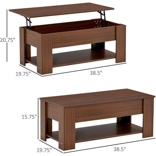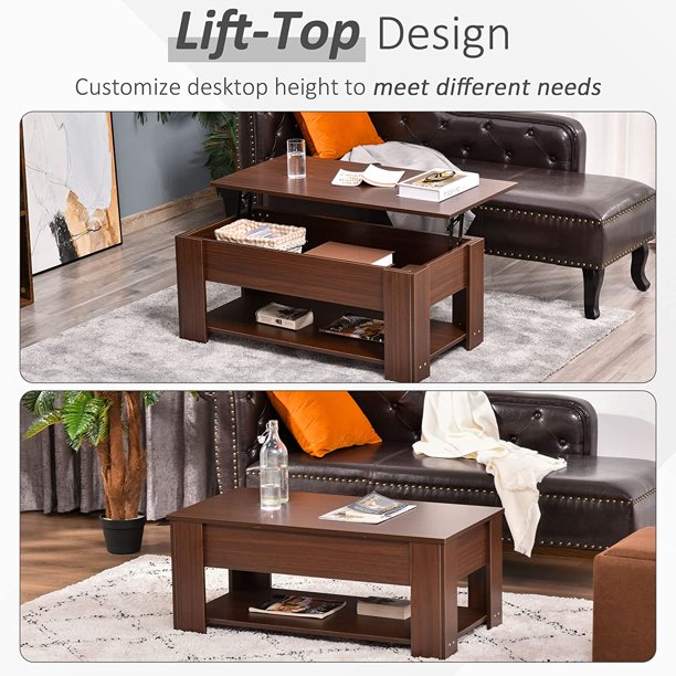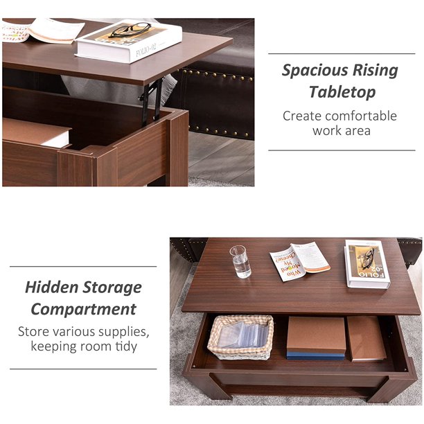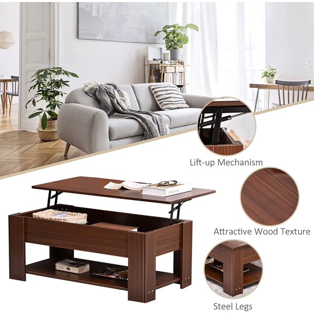 Lift Top Coffee Table Modern Furniture Hidden Compartment and Lift Tabletop Brown