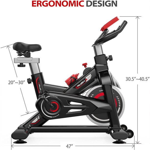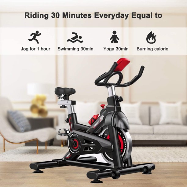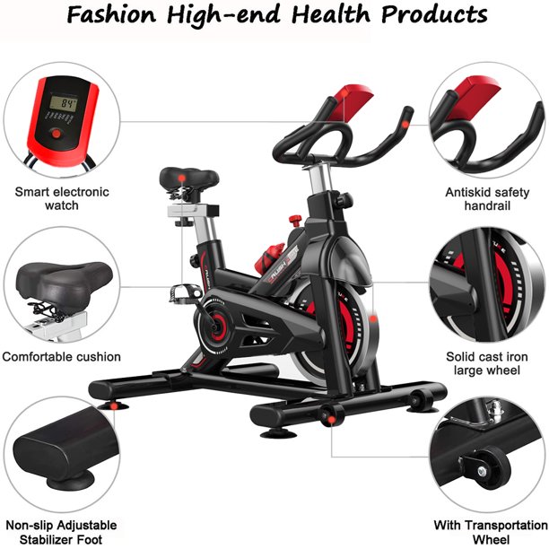 Professional Indoor Cycling Bike: Equipped with the silent belt drive system, the pinning bicycle can provide users with a quiet environment without disturbing others. Featuring the triangular structure and H-type base, it is stable enough to support users up to 330 lbs.