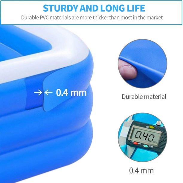 The 0. 4mm Inflatable Swimming Pool is PVC materials are 50% thicker than other's,reducing the risk of punctures and ensuring a long service life