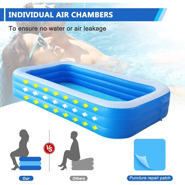 Safe and Reliable Inflatable Swimming Pool - Triple-decked independent air chambers prevent water or air leakage. Each air inlet has dual air leakage protection, no worrying about the leakage, just freeing you to focus on splashing your kids.