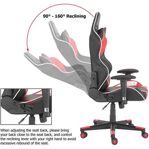 Multi Purpose Function To Office Chair: Ergonomic racing chair covered by breathable premium PU leather with freely adjustable lumbar support and headrest pillow protecting your spinal and neck. And most important, locking in any position when you recline, have the safe angle 90-135 degree